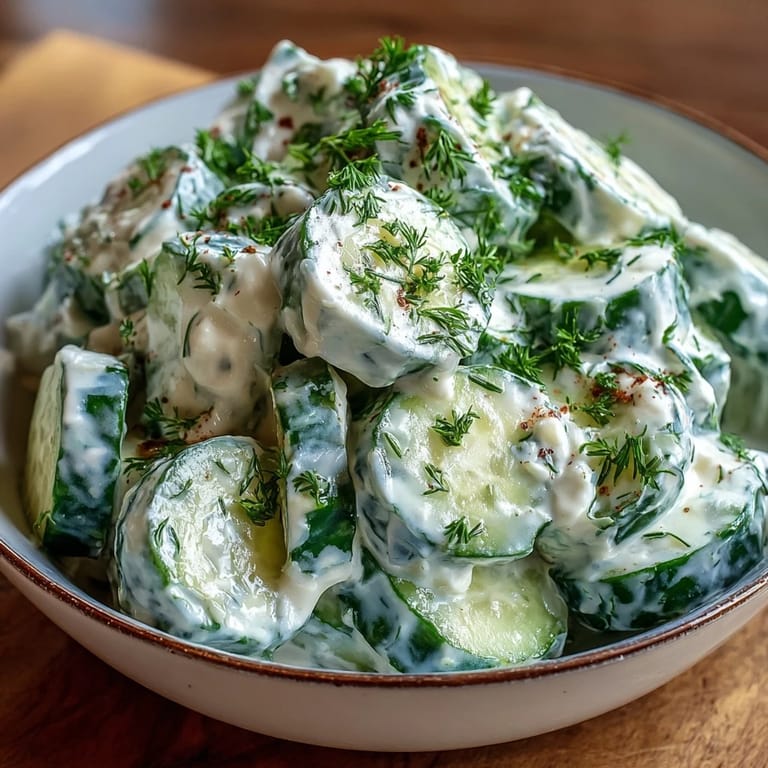 Pin it Last summer, my neighbor knocked on the door with a basket of cucumbers so fresh they still had morning dew clinging to them. I wasn't sure what to do with such a bounty until she mentioned her grandmother's creamy cucumber salad—the kind that tastes like cool relief on a hot day. That first bite changed everything; the tangy Greek yogurt wrapped around crisp cucumber slices felt indulgent yet somehow lighter than any heavy salad dressing I'd ever made. Now it's become my go-to when I want something that feels both comforting and effortless.