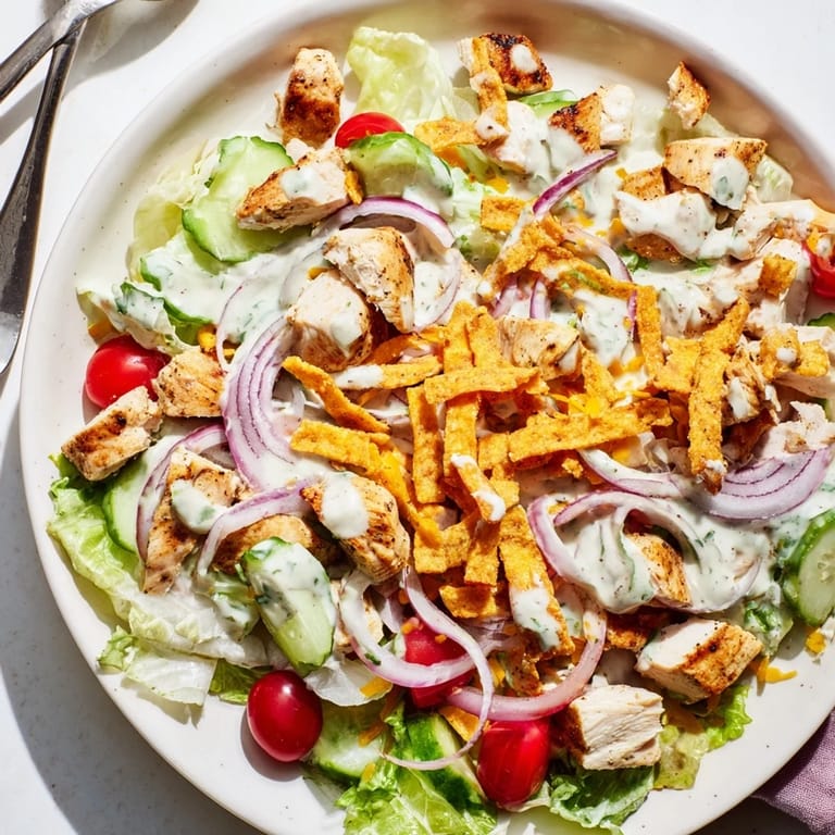 Pin it This recipe has become my go-to when friends come over for casual lunch on the patio. There's something about the combination of smoky grilled chicken, cool crisp vegetables, and that kicky jalapeño ranch that just screams summer gathering. I've served it at baby showers and birthday brunches and it disappears every single time.