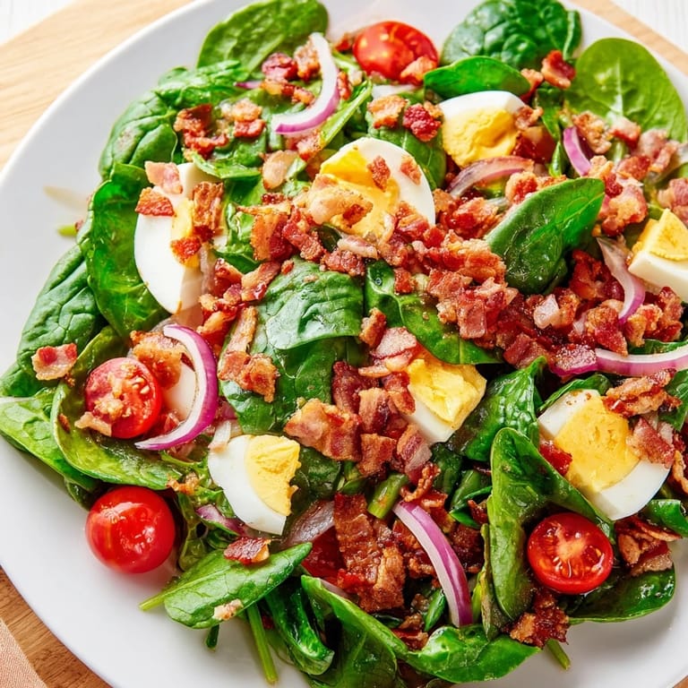 Pin it The first time I made this spinach salad was during a chaotic Tuesday when my refrigerator held nothing but random odds and ends. A package of bacon sat next to a carton of eggs and a bag of spinach that needed using urgently. Sometimes the best meals come from that desperate I have nothing to cook moment, where you throw things together with zero expectations. The combination worked so beautifully that it became my go-to whenever I need something that feels substantial without requiring hours in the kitchen.