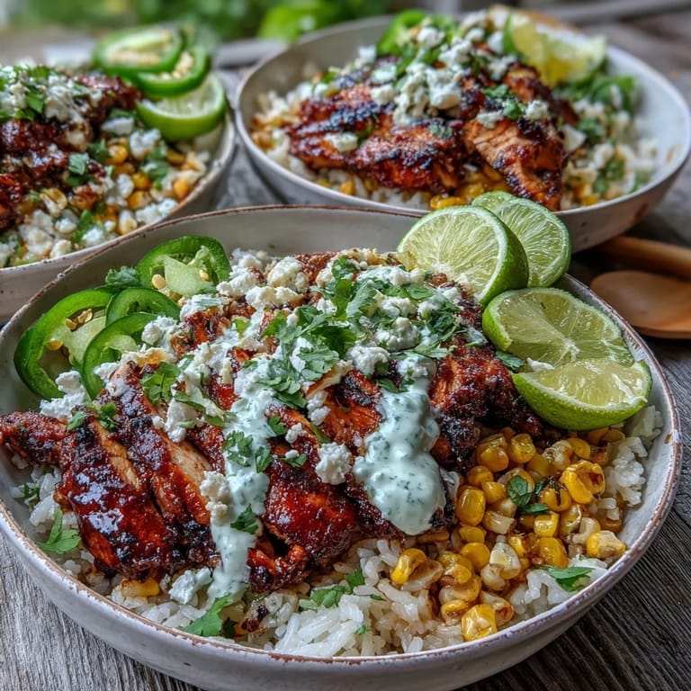 Pin it My neighbor knocked on my door one Thursday evening holding a paper bag of warm corn tortillas and a jar of something creamy and spiced. She'd just come back from visiting family in Guadalajara and wanted to share what she called "the real deal" street corn topping. We stood in my kitchen, smearing it on everything we could find, and by the time she left, I was already thinking about how to turn those flavors into something I could make on a weeknight. This bowl is what came out of that experiment, a little less traditional, a lot more practical, and every bit as satisfying.